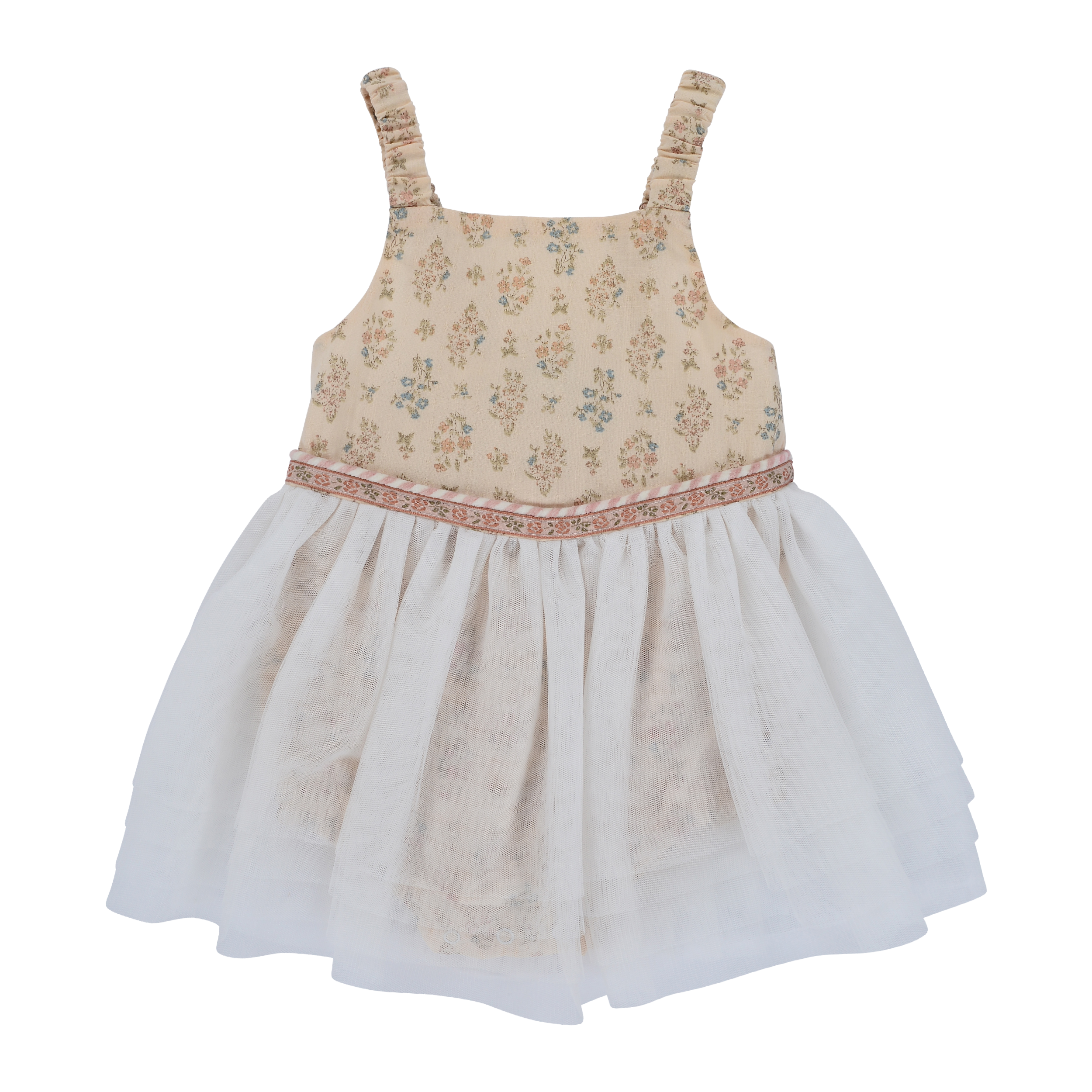 Playsuit with cotton bodice, press studs in crotch, tulle skirt