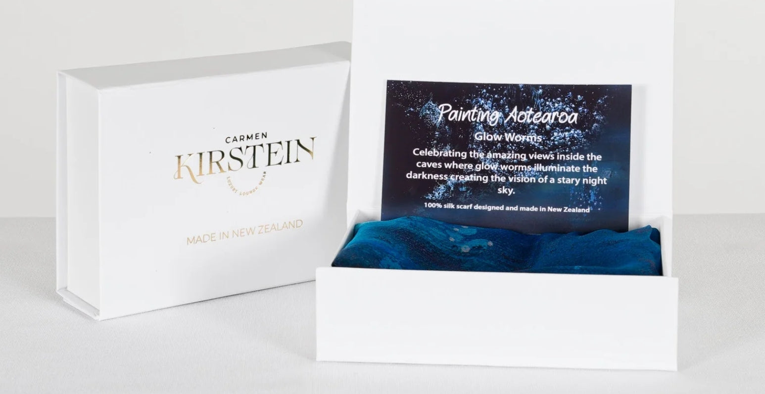 Each scarf comes beautifully boxed with a card explaining the inspiration behind the design.