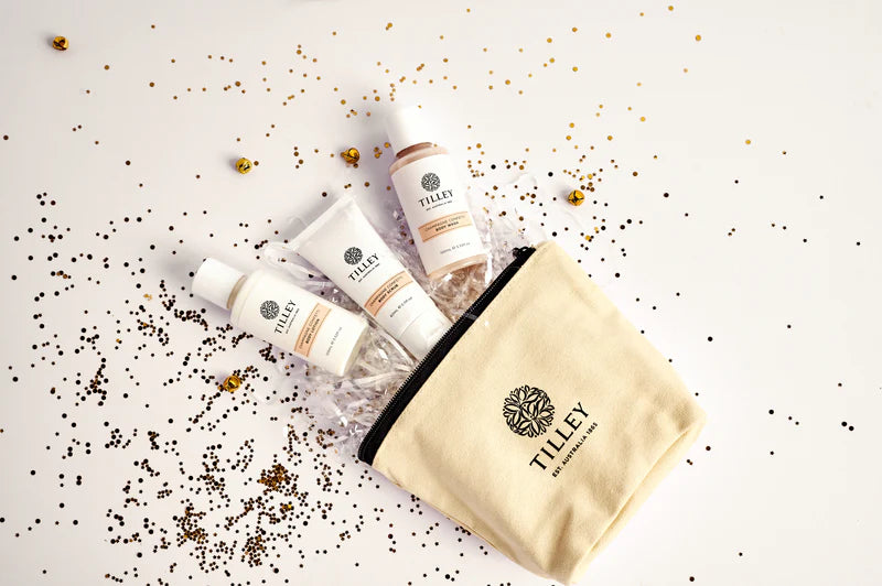 Pamper yourself with our Body Care Set, elegantly presented in a classic canvas travel bag. Indulge in a nourishing and invigorating experience as you cleanse, exfoliate, and moisturise your skin, leaving it soft, smooth, and delicately scented with effervescent Champagne Confetti fragrance.