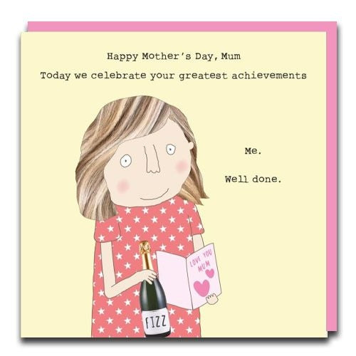 Rosie Made a thing card is carefully printed in the UK on eco-friendly, premium art board. Paired with a stylish pebble envelope, these cards convey the sentiment, "Happy Mother's Day, Mum. Today, we celebrate your incredible accomplishments." They're the ideal way to express your love and gratitude to your mother, especially on this special day.
