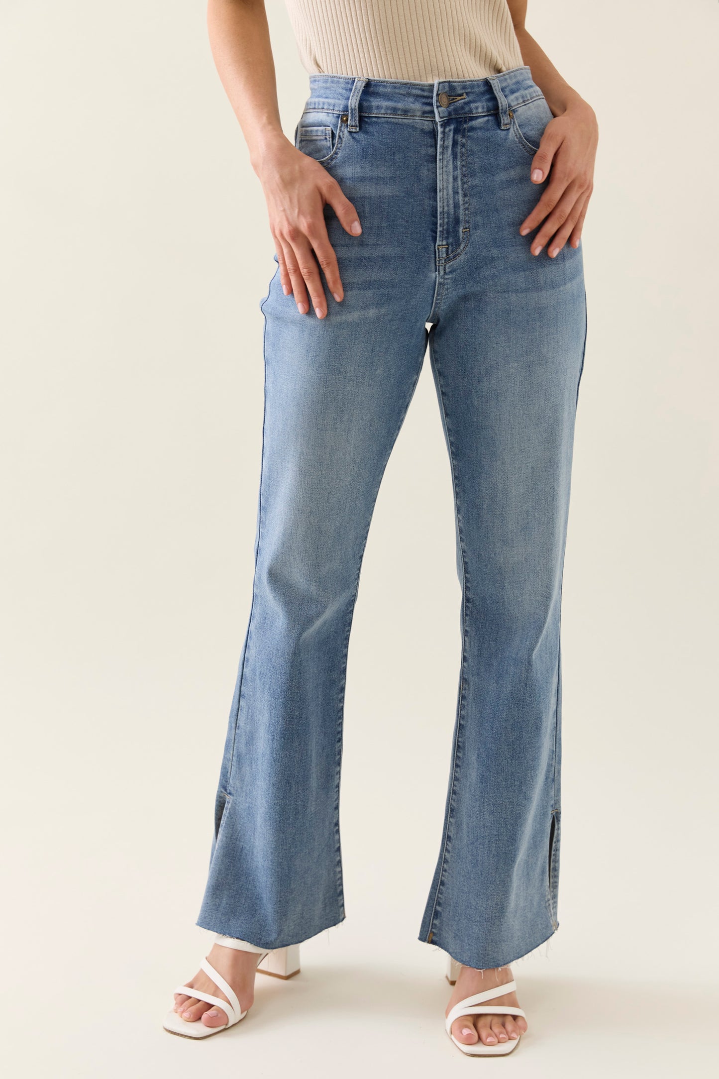 A modern bootcut shape with raw edge hem and side split details, the Nora Jean is crafted from soft stretch denim for all-day comfort and effortless wearability. Designed with a flattering high-waisted fit that hugs in all the right places and elongates the leg. Finished with five-pocket styling and soft structure for a timeless look.