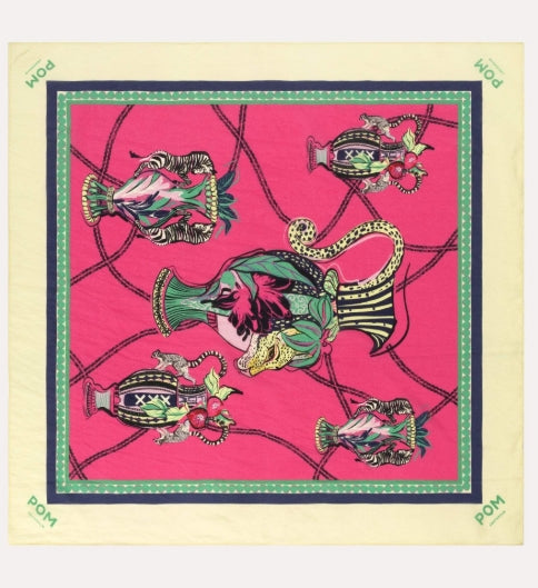 Add a splash of charm to your outfit with the Pom Amsterdam Vases Pink Petite Scarf. This delightful 50 x 50 cm silk shawl features a whimsical vase print in a cheerful mix of pink, green, and beige hues. Perfect for tying around your neck, enhancing a handbag, or styling your hair, this scarf adds a playful touch wherever you wear it. Crafted from 100% smooth silk, it feels as luxurious as it looks, making it a versatile accessory that brightens your day and lifts your style instantly.