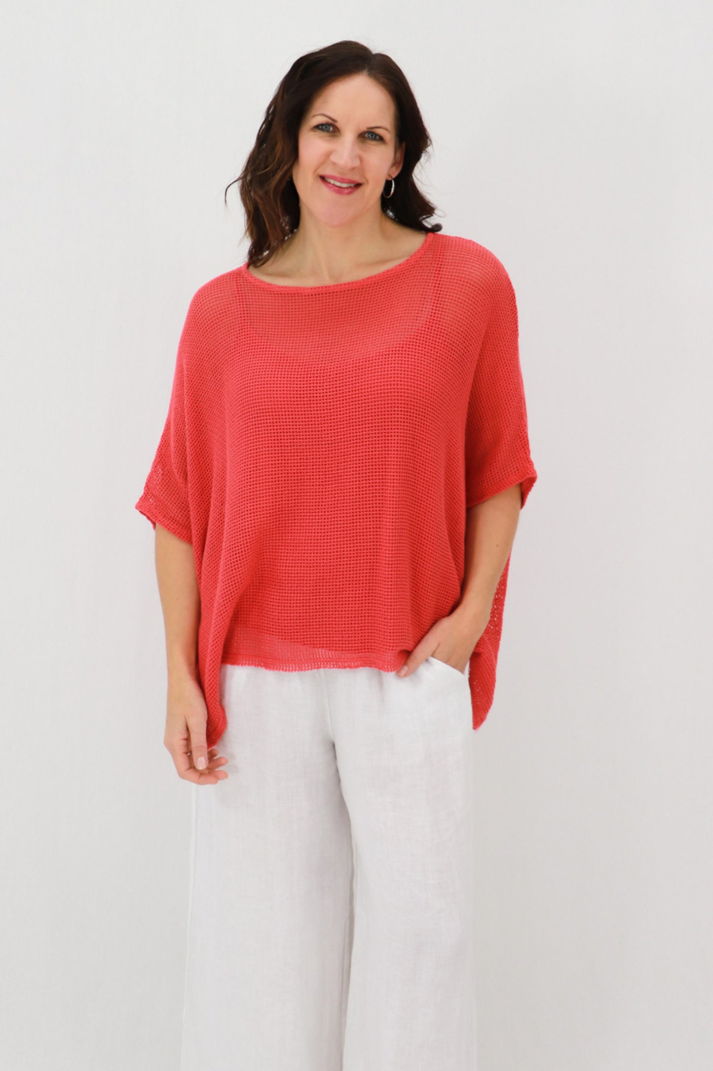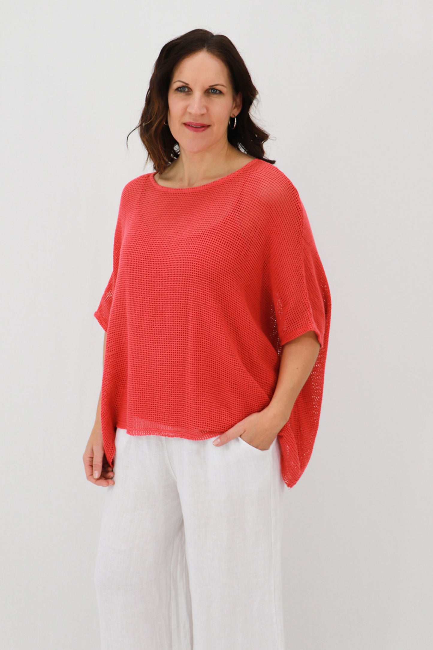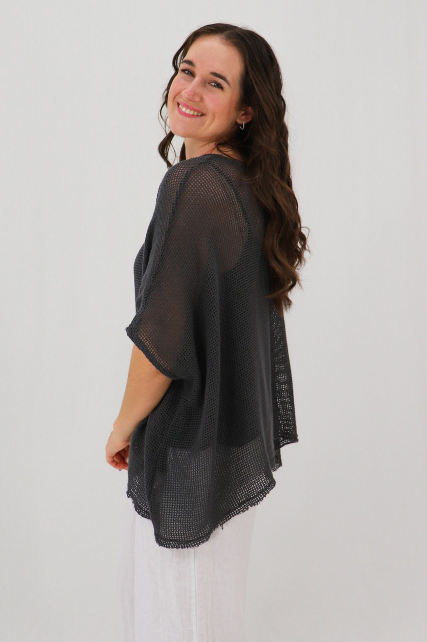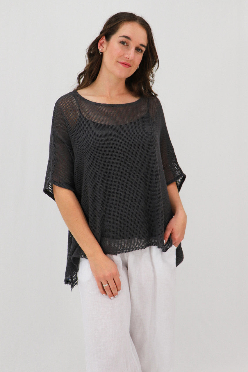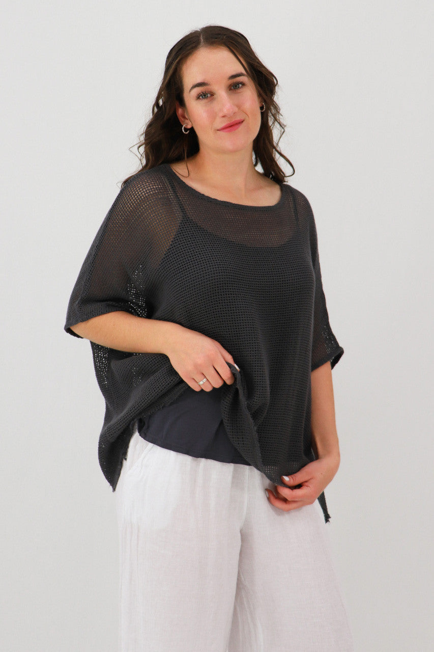 This batwing style is made from a cotton mesh and features a soft boat neck. A matching cami is included for easy styling.