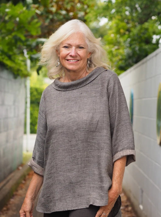 The Sintra Blouse has long been a cornerstone of the Rogue Linen collection. This effortless slip-on design features a gently rounded hem, a dropped back, and side seam splits. The Cowlneck Sintra elevates the classic with a refined cowl neck, adding an elegant touch. If you appreciate the original Sintra blouse, this updated version is a must-have addition to your wardrobe.