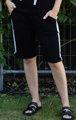 Incorporate a sporty edge into your everyday attire with these shorts, designed with a clean white side stripe and distinctive angled front pockets. Made from premium black French terry cotton, they offer enduring comfort and a lively style throughout the day. Perfect for a round of golf or walk in the park.